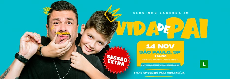 Serginho Lacerda, mais conhecido como o Pai do Bento, é comediante desde 2010 e viaja por todo o país com seu show solo de comédia “Vida de Pai”, um espetáculo de aproximadamente 75 minutos, que tem como principal diferencial, ser o primeiro show de Stand Up Comedy com classificação livre do Brasil. Nesse espetáculo, Serginho conta suas histórias divertidas sobre a paternidade o que aproxima ainda mais o público das vivências diárias.