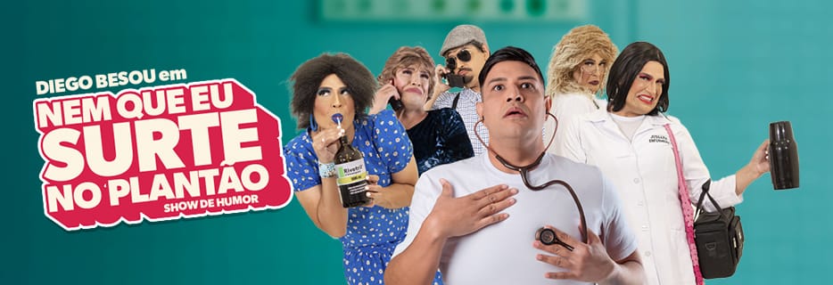 O maior show de humor da área da saúde está de cara nova! “Nem que eu surte no plantão”, o novo espetáculo do enfermeiro e humorista Diego Besou, promete transformar os dilemas da vida moderna, especialmente os vividos nos bastidores dos plantões em uma comédia hilária e cheia de identificação.